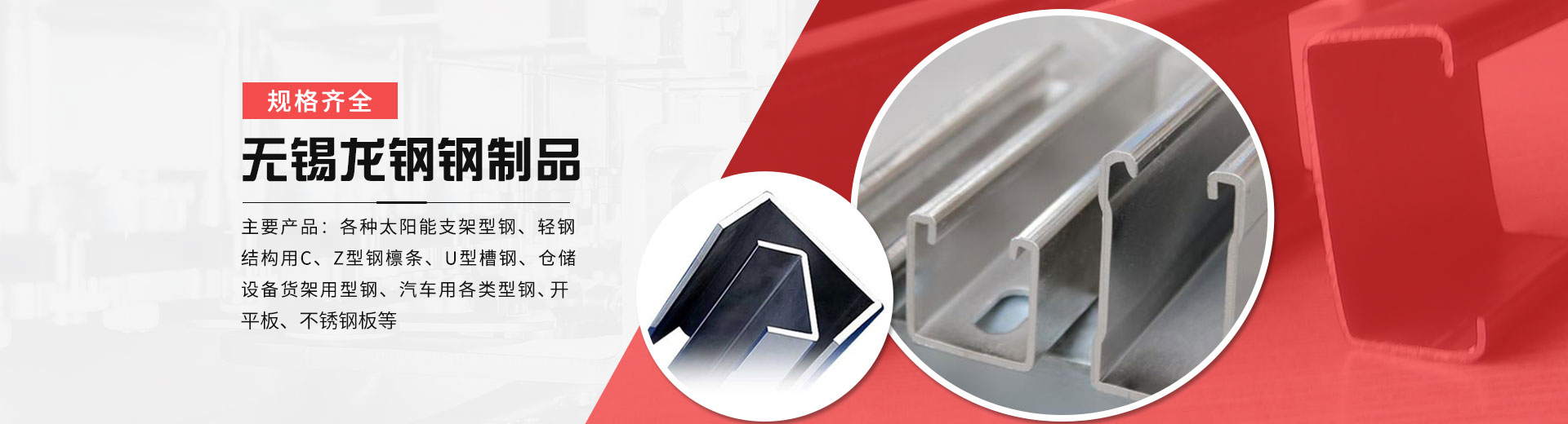 各種太陽能支架型鋼、輕鋼結構用C、Z型鋼檁條、U型槽鋼、倉儲設備貨架用型鋼以及汽車用各類型鋼等。